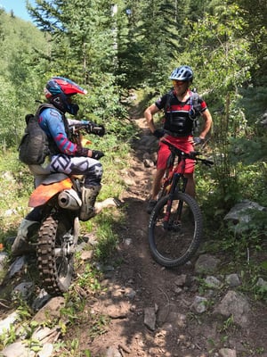 Trailtoleranz wird nicht nur im Bündnerland, Wallis und Berner Oberland gelebt, sondern auch in Colorado. Nur dass sich hier nicht nur die Biker und Wanderer die Trails teilen - nein es kommen auch noch die Motocrossfahrer auf ihren knatternden Maschinen dazu. Wenn man sich auf dem Trail begegnet wird angehalten und es kommt immer zu einem kurzen Schwatz. Nicht auszudenken wie Biker und Wanderer reagieren würden, wenn sie in der Schweiz die Wanderwege mit Motocrossfahreren teilen müssten.