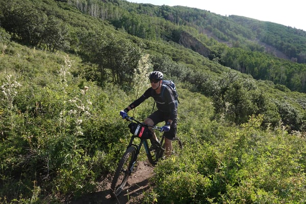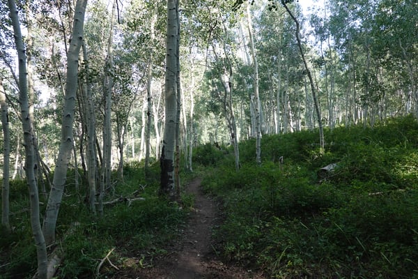 Bald bleiben auch die Birken zurück und Büsche sind nun das dominierende Element. Kurve um Kurve winden wir uns runter, bis wir endlich auf den Kokopellitrail treffen, der aus dem Castelton Valley nach Moab führt.