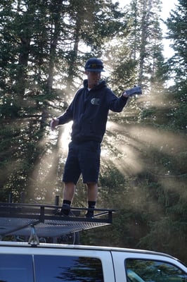 Der Bus von Porcupine Shuttle mit Eigentümer Bryan bringt die Gruppe bestehend aus drei Kanadiern, zwei Texanern, zwei Schweizer und einem Deutschen in einer mehr als stündigen Fahrt auf den Geisers Pass zum Ausgangspunkt der Tour auf gut 3200 m über Meer. Es ist angenehm frisch und die Bikekollegen, welche nur mit dem T-Shirt zur Tour angetreten sind frösteln.