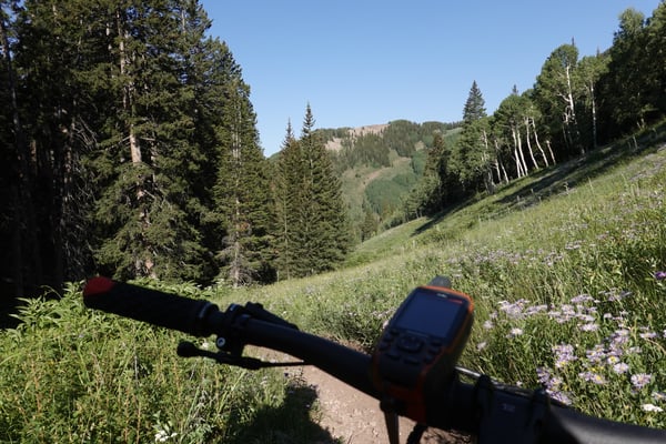 Nach kurzem Einrollen über blumenprächtige Alpwiesen - Weidebeef sind auch zu sehen folgt ein giftiger Aufstieg auf den Burropass auf 3621 m. Hinter dem Pass geht es gleich ruppig durch einen Nadelwald und entlang von Geröllfelder in die Tiefe in Richtung Moab. Schon bald wird der Trail flacher und flowiger und die Fichten machen den Birken platz.
